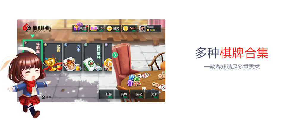 博雅棋牌包括多款棋牌游戏,让您一次,多重体验,电视大屏玩到爽。