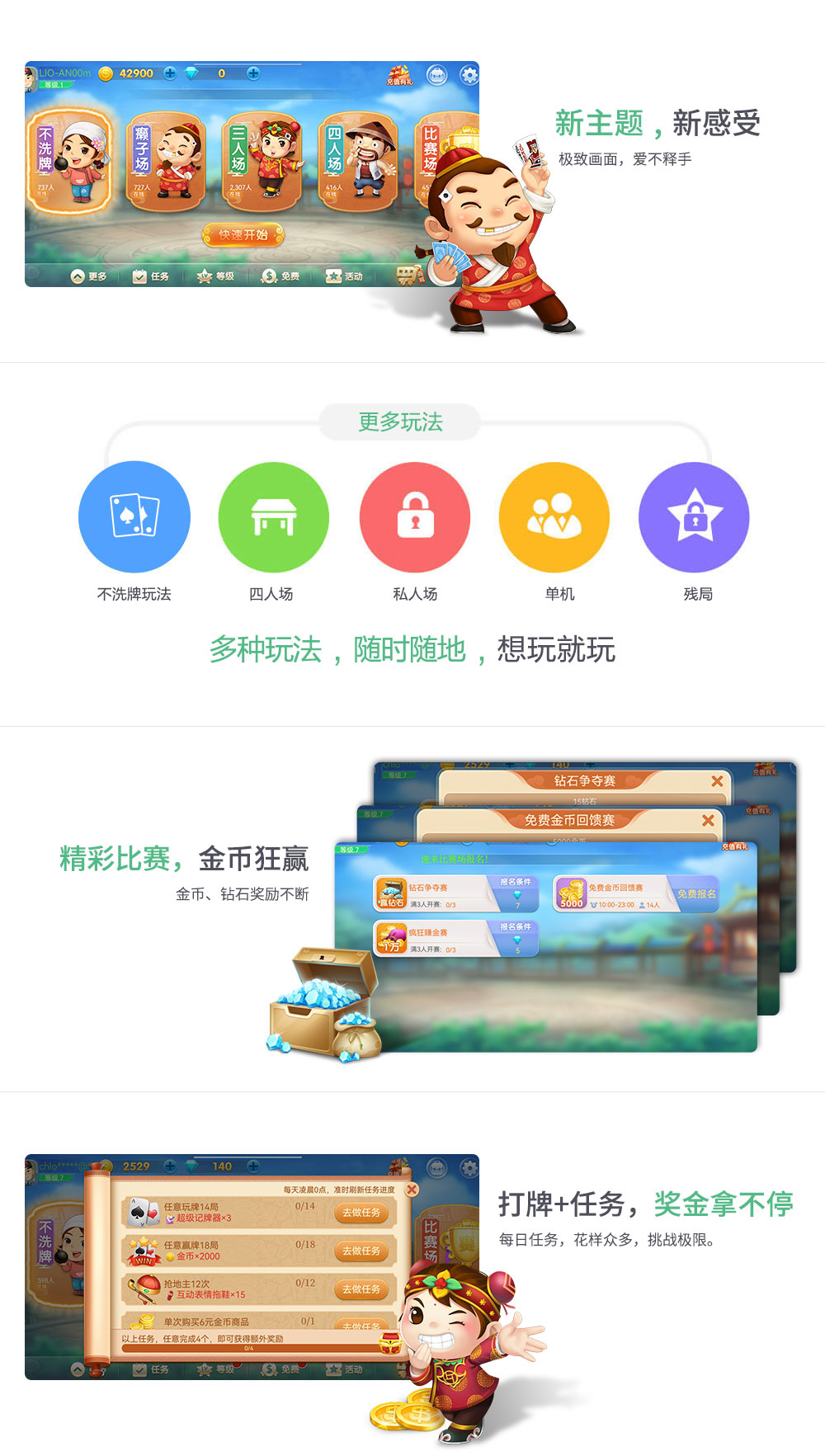 5)博雅斗地主是一款游戏画面精美,内容丰富的棋牌类游戏,不仅有完善的任务系统更有刺激的比赛机制,能让玩家感受到斗地主的乐趣。玩法上操作需要玩家适量思考,有助于锻炼玩家的记忆力和大局观,增强玩家的自信心,带给玩家轻松愉悦的休闲心情。