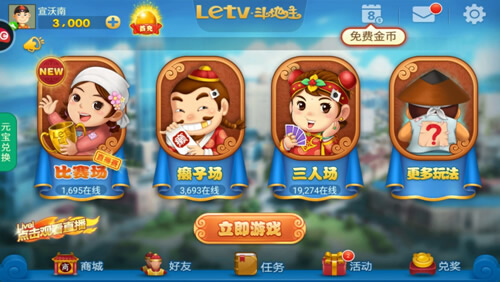 【博雅-乐视欢乐斗地主简介】乐视欢乐斗地主是博雅互动与乐视体育联合发布的一款定制版斗地主游戏,除了比赛直播这一重要特色之外,还包含三人、癞子、比赛等多种玩法可供选择,满足游戏玩家的差异化需求;在操作上,这款游戏也力求简易便捷,超智能选牌,一指轻松搞定;此外,这款游戏还独家定制了各类特色任务,边斗地主边做任务,金币赢不停;除精美画面及流畅操作外,乐视欢乐斗地主还特别提供了俏皮表情包以及好友系统,让玩家随时随地轻松组局斗地主。