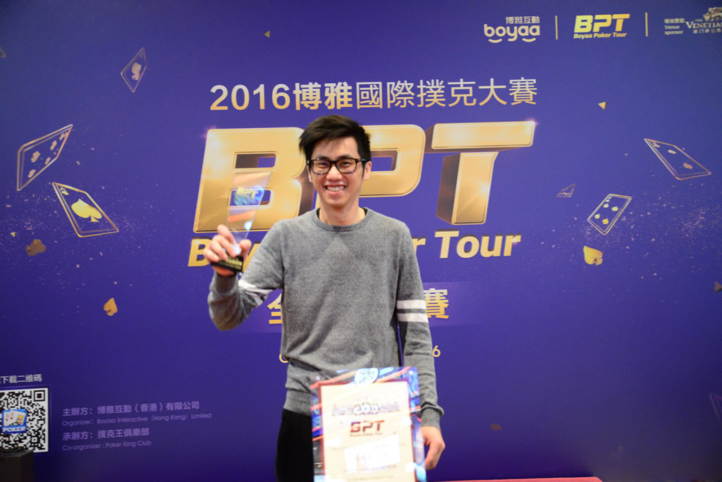 10月24日,由博雅互动主办的2016博雅国际扑克大赛(Boyaa Poker Tour,简称“BPT”)在中国澳门落下帷幕,来自香港地区的选手叶朗在比赛最后一小时逆袭,夺得了本届BPT全球总冠军,揽得56万港币奖金!