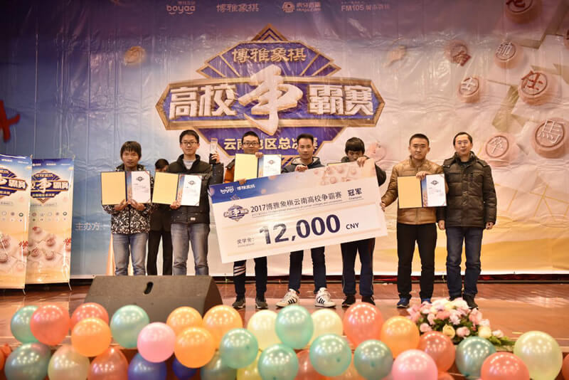 经过两天整整九轮的激烈角逐,2017年博雅象棋高校联盟争霸赛总决赛冠军于昨日出炉,昆明理工大学战队以领先第二名云南大学战队7分的绝对优势夺得桂冠。至此,为期一个月吸引了8000余名大学生参与的赛事圆满结束。
