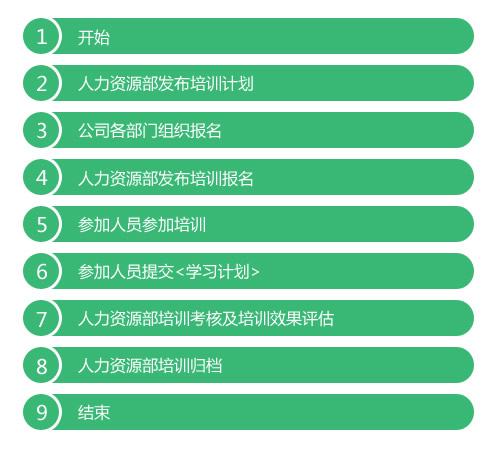 制定计划: 在新一期培训工作开始前一周,由培训管理人员根据本期新员工人员情况分析以及 当前的工作情况,对整期培训工作进行统筹计划和各项工作准备。