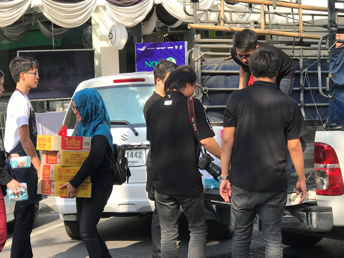 泰国分公司利用这笔善款购买了大量救灾物资,包括饮用水、罐头食品、垃圾袋、卫生用品等等,顶着烈日进行装箱、卸货,将这批满载博雅游戏玩家爱心的物资交予了募捐站,也希望这份正能量能够不断地传递下去,为受灾的泰南民众带去温暖。