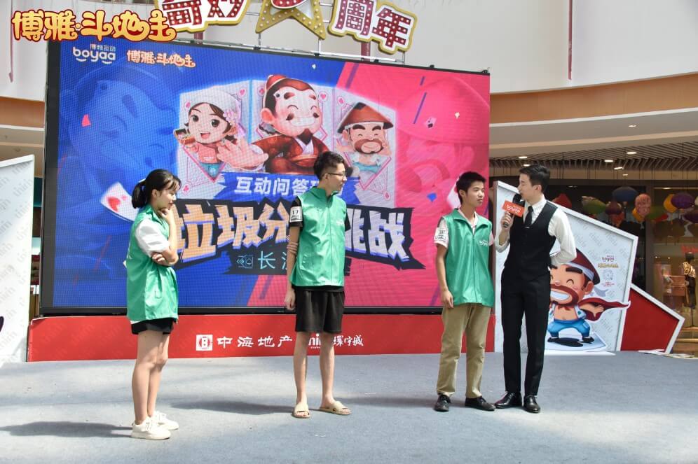 比赛中场休息期间,博雅互动还进行了垃圾分类知识大挑战活动,挑选街坊和选手上台答题,其中左侧的小姐姐不仅答题正确还补充分享了很多垃圾分类的知识点,让我们的主持人都自叹不如,可以看出长沙人民的环保意识都非常之高;而右侧的小哥哥则凭借一口地道的长沙口音,让现场所有人倍感亲切,圈粉无数。